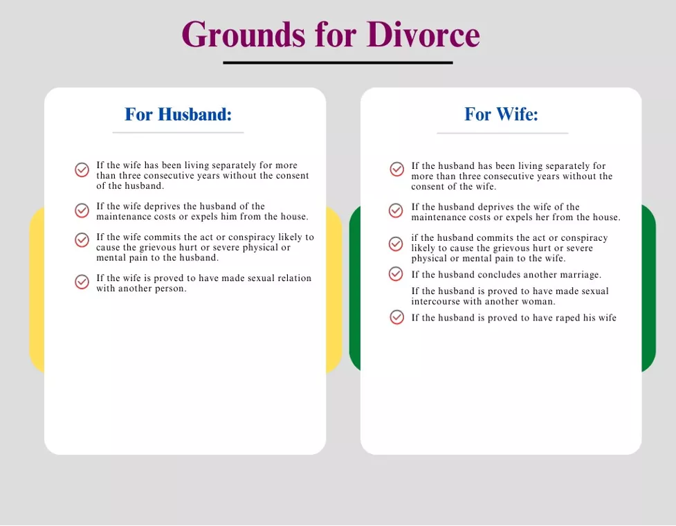 In context of Nepal, spouses or married couple need to provide some grounds or reasons for divorce in their petition while filing for divorce. Basically, as per new National Civil Code of Nepal, 2074, there are certain conditions for both husband and wife to file divorce petition in the court;